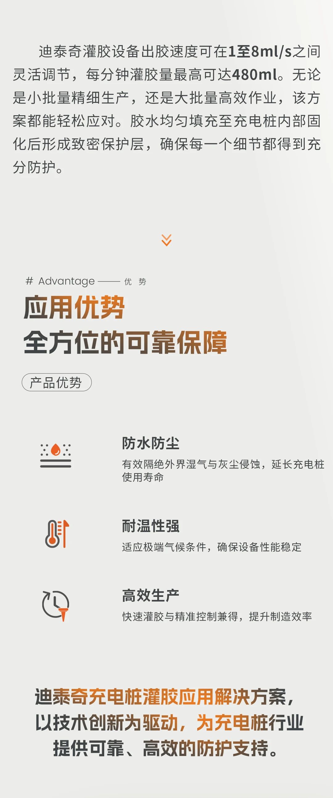 摘要:在充電樁制造領域,電子元件的長期穩定性和可靠性至關重要。迪泰奇推出的充電樁灌膠應用解決方案,以先進的技術與優質材料為核心,為行業提供高效、精準且耐用的保護方案。